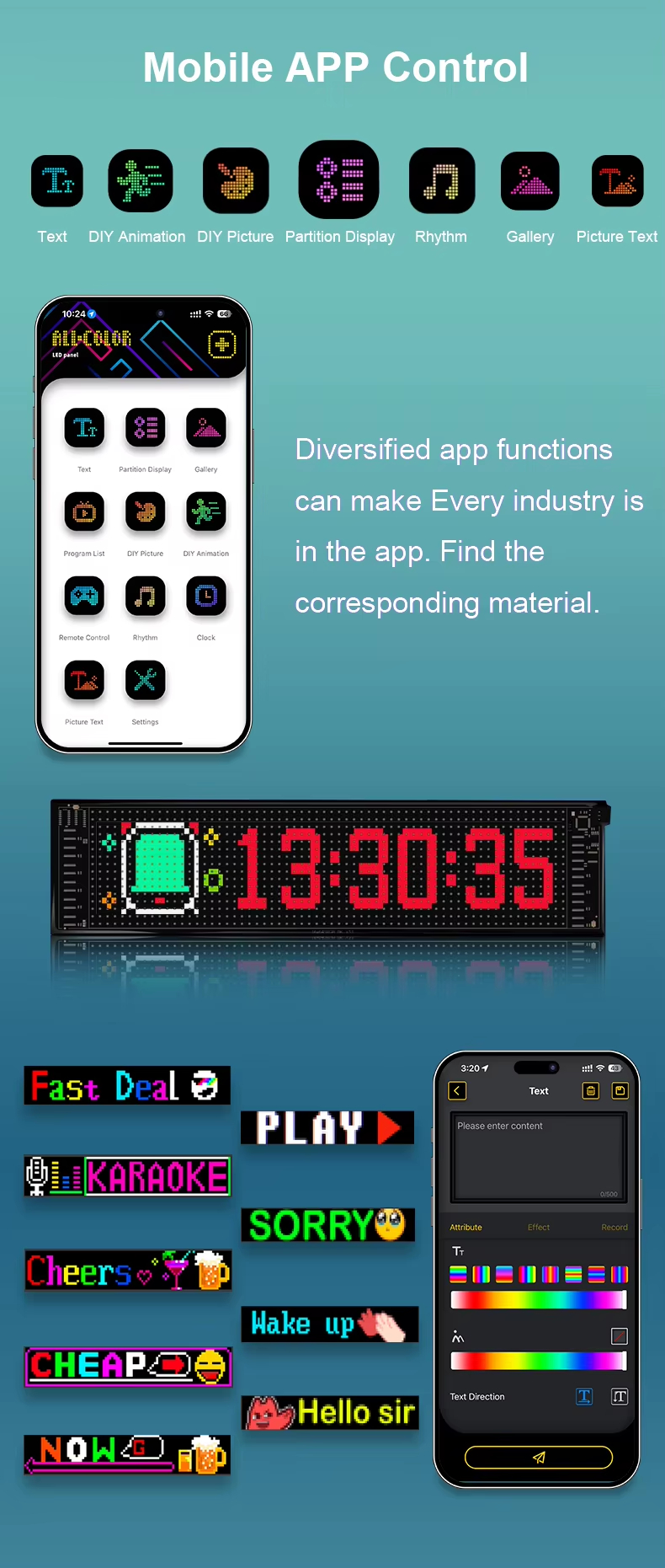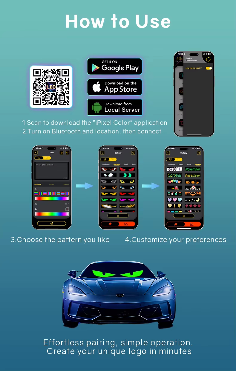 پنلهای ماتریکسی LED سایز ۶۰در۱۲ سانتی متر خودرو که با کنترل و اپلیکیشن موبایل عرضه میشوند، راهکاری جذاب برای نمایش پیامها و تصاویر روی موتر ارائه میدهند. این فناوری جدید به رانندگان اجازه میدهد با استفاده از اپلیکیشن موبایل، پیامهای متنوعی را برای سایر رانندگان ارسال کنند.