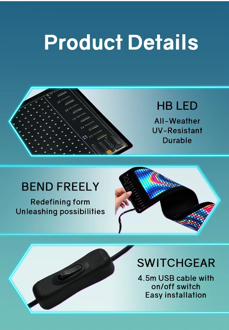 16*96 LED Matrix Pixel Panel USB 5V Flexible Light RGB Pattern Graffiti Scrolling Text Animation Display Car Shop APP Control